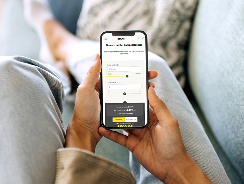 RAA Finance loans are provided by RAC Finance Limited ABN 77 009 066 862 Australian Credit Licence 387972 and are subject to RAC Finance lending criteria; conditions, fees and charges apply. Royal Automobile Association of South Australia Limited ACN 677 371 274 credit representative number 466848 is an authorised representative of RAC Finance Limited.