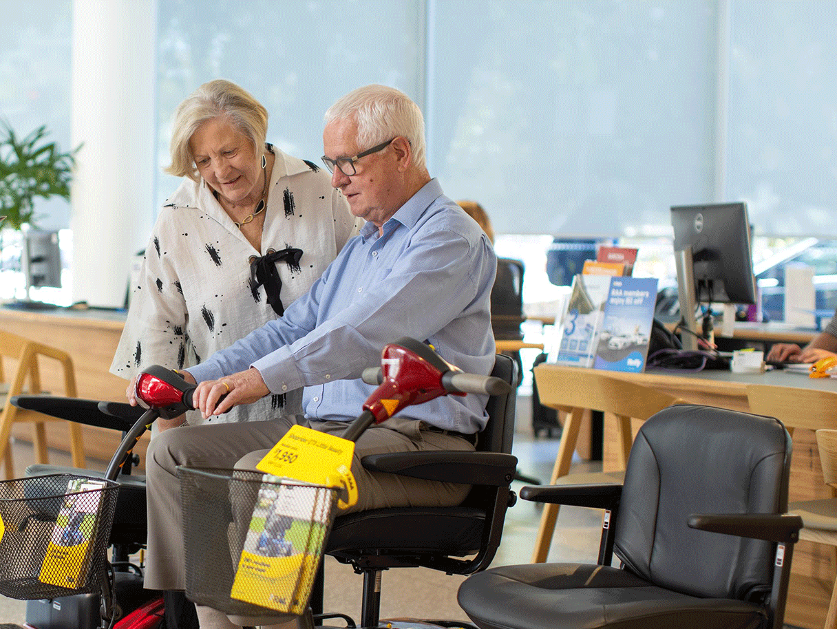Aged care, home care and NDIS approved plan holders can purchase mobility scooters through RAA. Simply request our staff to organise an invoice by calling 1800 251 254 or visiting an RAA Shop.