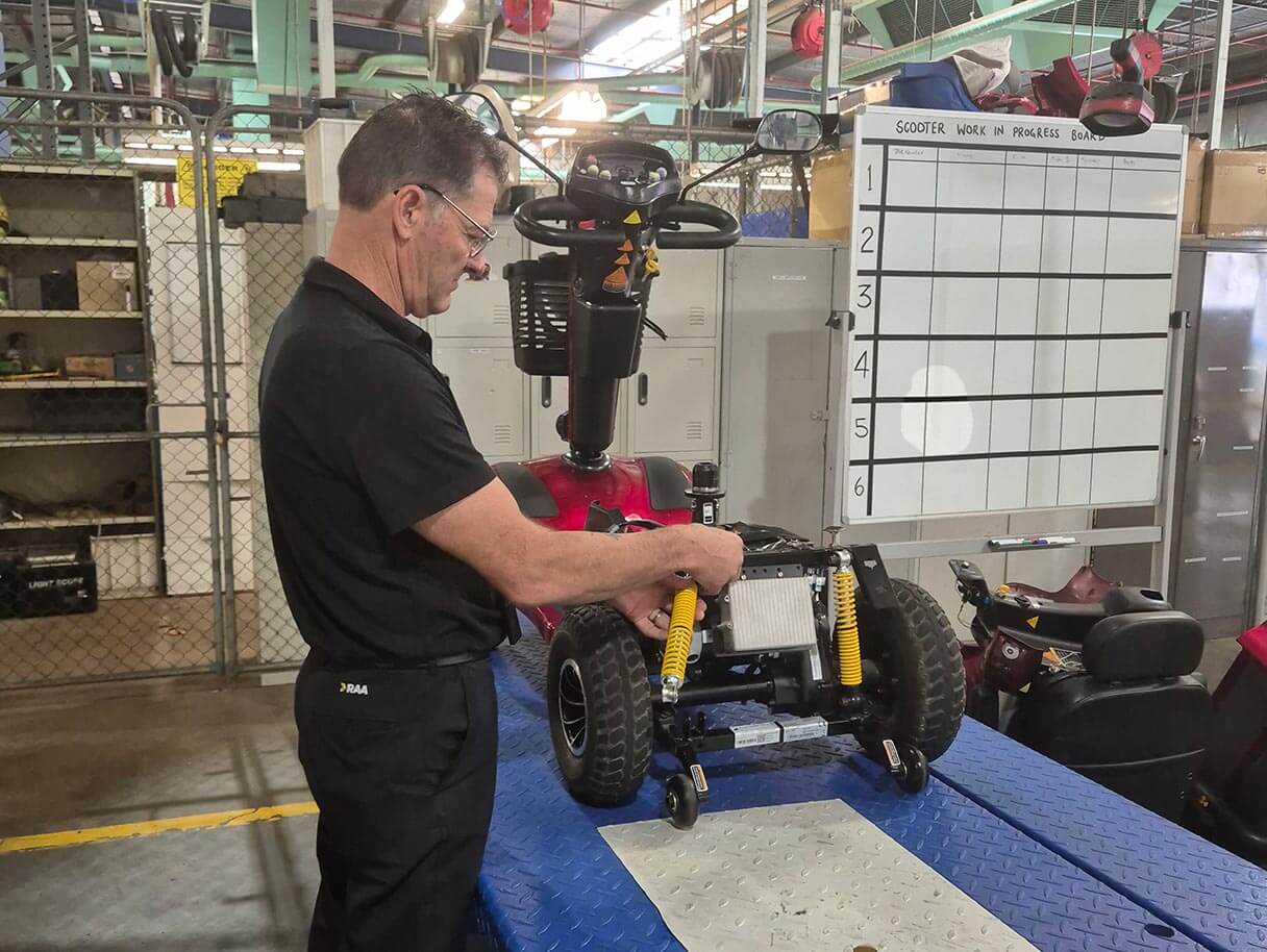 Shoprider mobility scooters can be serviced at our Mile End workshop, or we can come to you if you live in metro Adelaide. RAA members receive a discount on servicing and parts for Shoprider models.